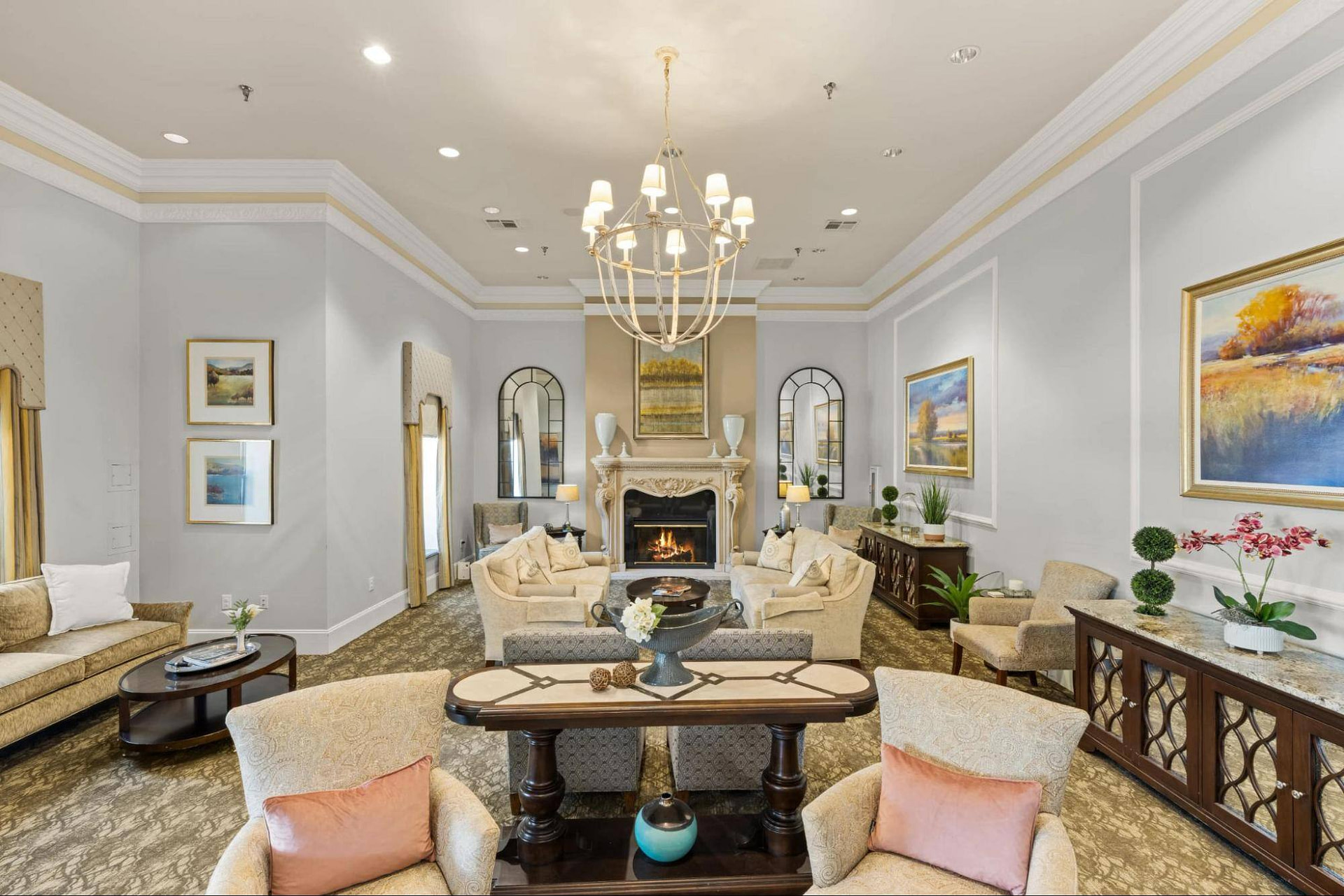Other amenities: Concierge services, Professional beauty salon and spa with barbershop, Inviting living rooms and common areas throughout, Lush landscaped gardens with walking paths, Elegant terraces and outdoor entertaining spaces, Professional team available 24 hours a day, Emergency call response system, Spacious and elegantly appointed apartment homes, Full calendar of fun social, cultural, educational, and recreational activities, Inspiring arts and crafts studio, Entertaining card and game room, Senior-equipped fitness and wellness center, Educational library and media center with internet access, Scheduled and private transportation, Housekeeping and maintenance services.